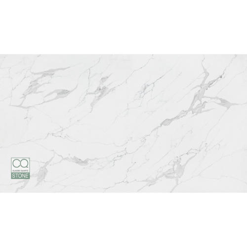 - Appearance: The stone features a bright, clean white background with bold, fluid, and subtle light to smoky gray veins, designed to mimic the luxurious appearance of natural marble.