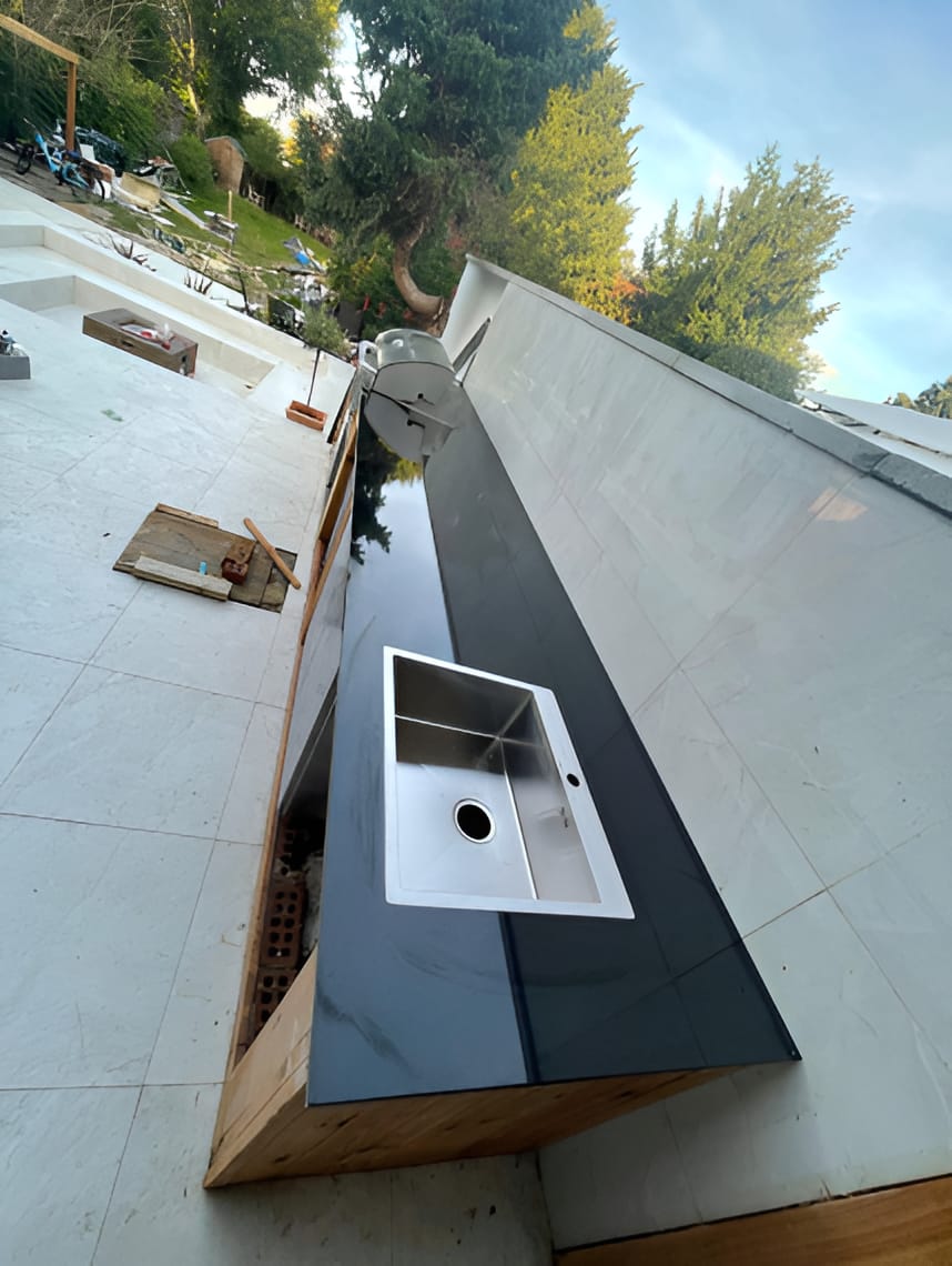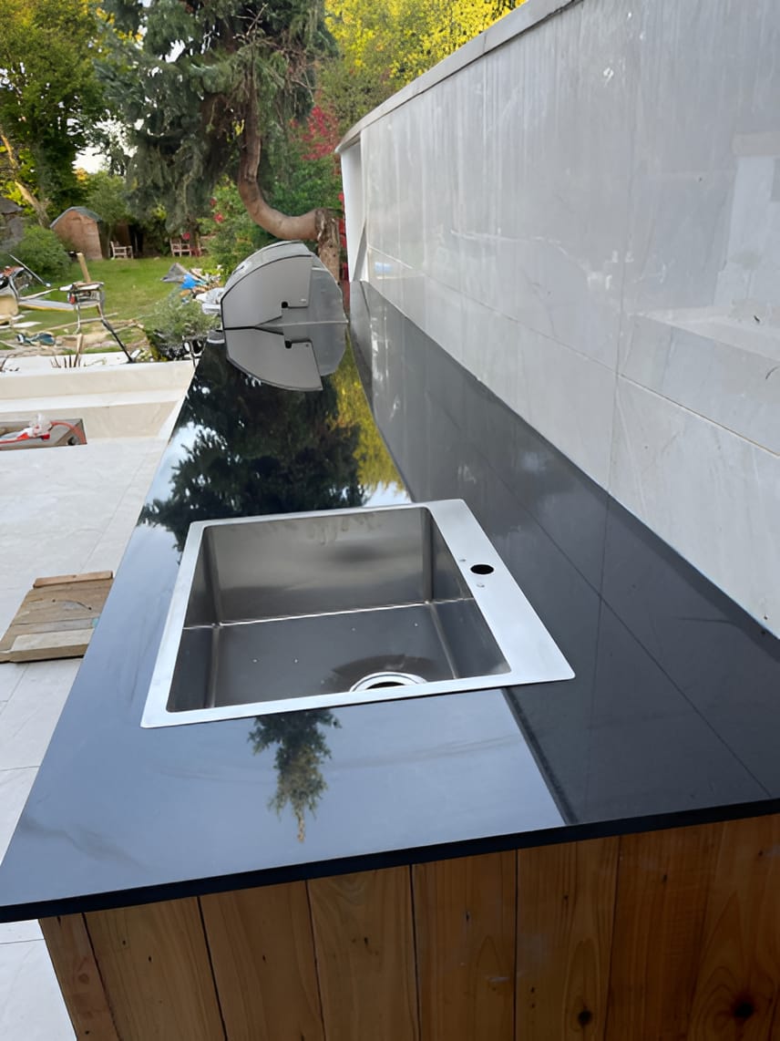 Works included multiple sink cut-outs and rounded upstands, ensuring both functionality and continuity of design.